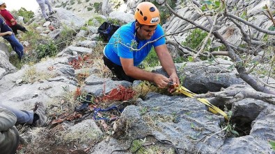 Zorlu dağ yollarının aşılmasının ardından keçinin bulunduğu bölgeye halat yardımıyla inen ekipler, 3 gün aç ve susuz kalan keçiyi 4 saat süren çalışmanın ardından kurtararak sahibine teslim etti.