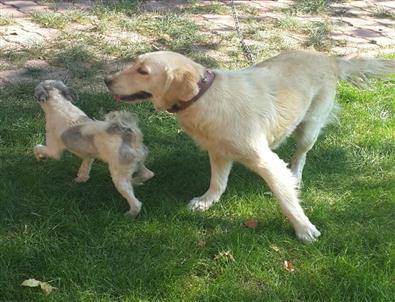 8°CGolden cinsi Misha ile Terrier cinsi Şaşkın, günün büyük bölümünde birbirleriyle oynayıp, izleyenlere de moral veriyor.