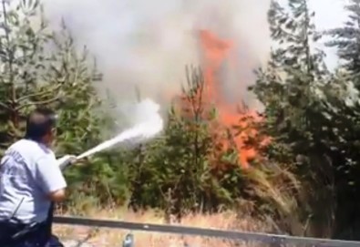 Yangında yaklaşık 1 hektarlık alan tahrip olurken, soğutma çalışmalarının devam ettiği öğrenildi.