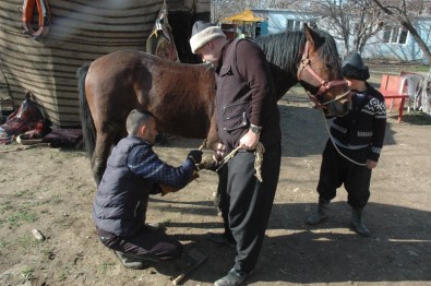 Onikişubat ilçesi Maarif Mahallesi’nde bulunan at çiftliğinde nal çakma yöntemlerinin inceliklerini anlatan Kılıçsallayan, atın cinsine göre nal çeşitlerinin de olduğunu söyledi.