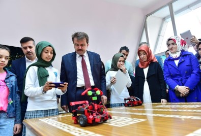 Başkan Erkoç ve beraberindekiler açılışın ardından STEM Merkezi’nde sergilenen ürünleri incelediler.