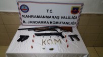 Eğlence Merkezinde Ruhsatsız Silah Ele GeçirildiElbistan İlçe Jandarma Komutanlığı ile Kahramanmaraş İl Jandarma Komutanlığı görevlilerinin, bir eğlence merkezinde yaptıkları aramada 2 adet ruhsatsız av tüfeği, 1 adet ruhsatsız tabanca ile bu silahlara ait çok sayıda fişek ve 1 de kuru sıkı tabanca ele geçirildi.